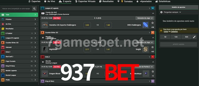O 937 Bet oferece uma grande seleção de opções de apostas em e-sports com probabilidades competitivas